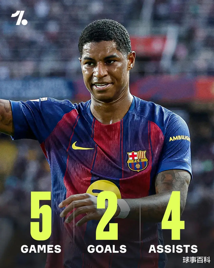 正如上面提到的,这些壮举后来产生了一个令人惊讶的统计数据。根据Opta的数据显示,拉什福德本赛季直接参与进球数达到了6球(2球4助攻),成为弗利克教练阵容中进球参与最多的球员。紧随他身后的则是亚马尔(2球3助攻)、拉菲尼亚(3球2助攻)、费兰·托雷斯(4球1助攻)。