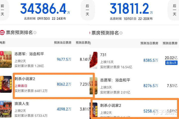 国庆档头部《刺杀小说家2》口碑两极分化,预测票房一夜“蒸发”2亿!