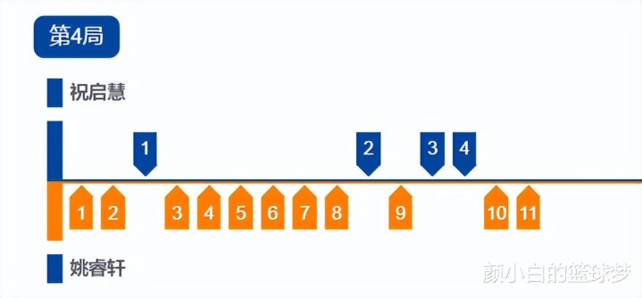 第四局开场姚睿轩就2-1领先,虽然姚睿轩一波6-0拉开分差,随后姚睿轩9-2直接打崩祝启慧,最终姚睿轩11-4拿下胜利。