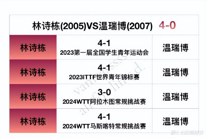 林诗栋VS温瑞博4胜0负;